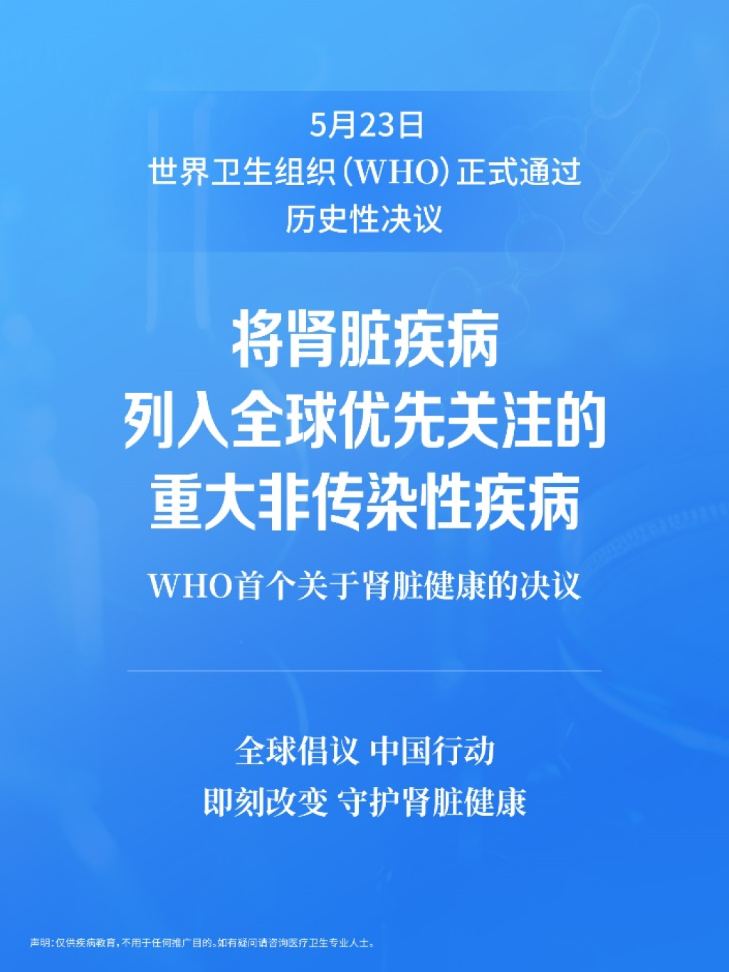 日前,第78屆世界衛(wèi)生大會于瑞士日內(nèi)瓦召開。會議通過了題為“通過促進腎臟健康和加強腎臟病預(yù)防與控制來減輕全球非傳染病疾病負擔(dān)”的決議,將腎臟疾病列入全球優(yōu)先關(guān)注的重大非傳染性疾病。