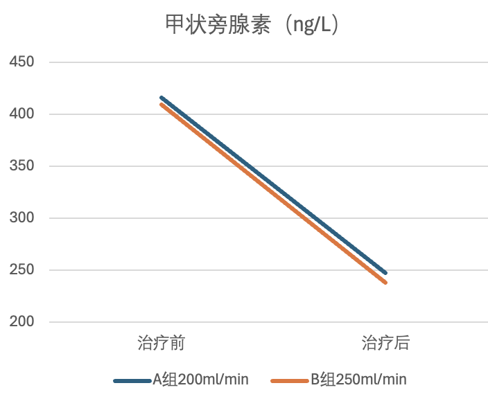 有研究表明,HD+HP治療時(shí),200ml/min的流速與250ml的流速對(duì)于機(jī)體毒素(肌酐、尿素、β2-微球蛋白、甲狀旁腺素)的清除作用無(wú)明顯差異。[1]