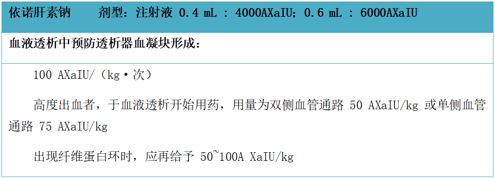 《血液凈化標(biāo)準(zhǔn)操作規(guī)程2021版》的中血液透析治療,低分子肝素的用法建議:適用于無活動性出血或具有潛在出血風(fēng)險的患者,一般選擇60-80IU/kg,推薦透析治療前20-30min靜脈注射,無需追加劑量。